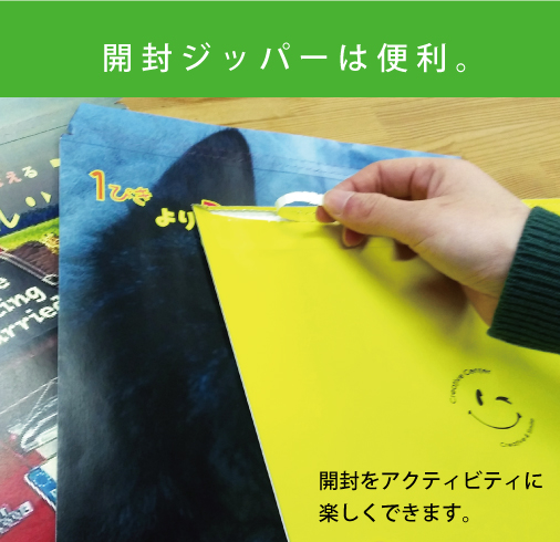 ハサミを使わずに開封できるとても便利なジッパー付封筒。